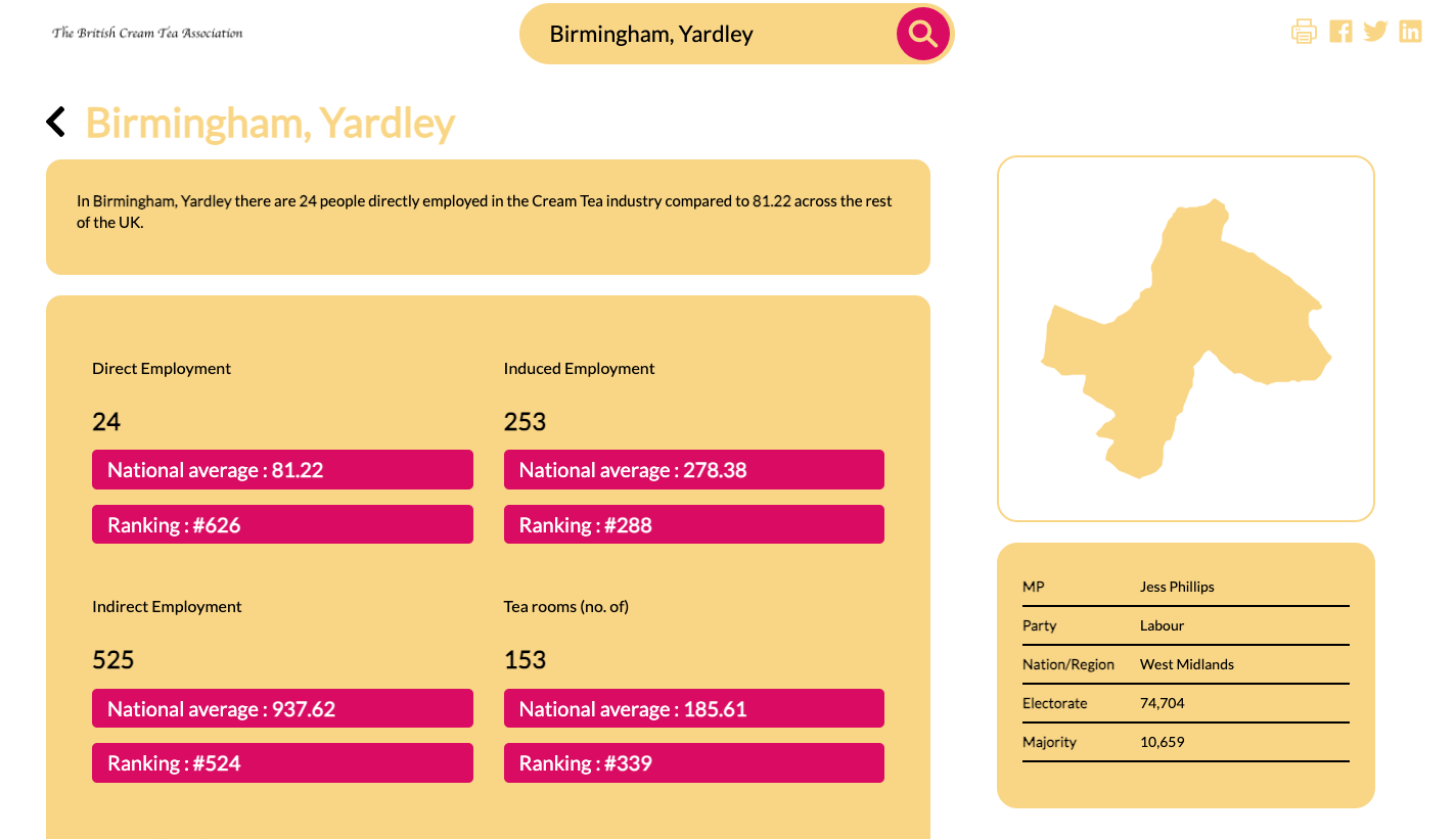 For Constituency Engage customers, we’ve boosted the prominence of Email and Tweet MP calls-to-action, with that now appearing above the MP fact file, and the constituency map, which now sits in a neat box.