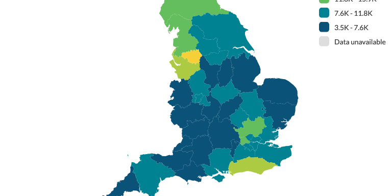 Using this data, we have visualised the situation in each Integrated Care Board in England. Click here to view, or use the map below.