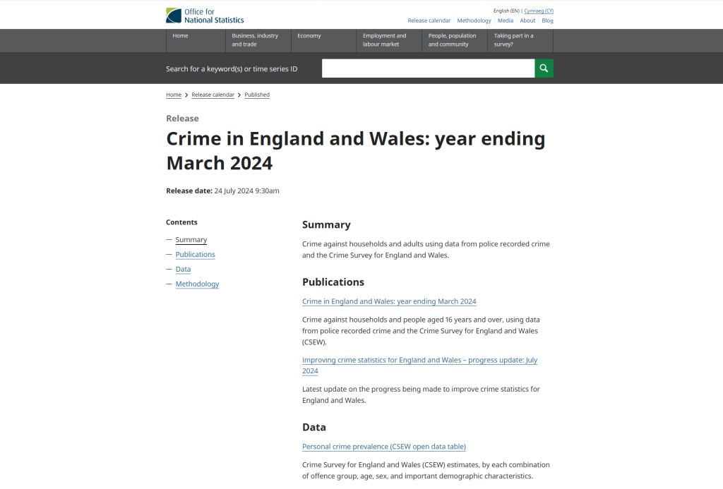 We started by looking for the raw data, which covers the year to March 2024 in England and Wales, on the Office for National Statistics website.