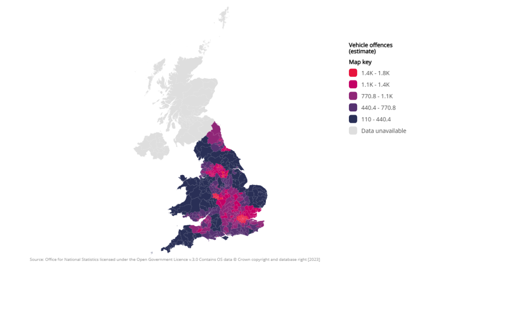 For the constituency of Bath for example, which is part of the Avon and Somerset police force area, where the rate of vehicles offences per 1,000 population is 5.5, we are able to estimate that there were 563 vehicle offences.