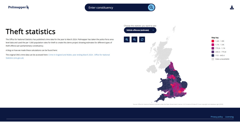 Check out the visualisation below of estimated “theft statistics” by parliamentary constituency.