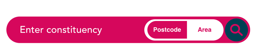 Sometimes it can be useful to have the ability to search both by constituency and by postcode, which is why we’ve created a search function where you can toggle between the two. An example is where the project is being used both by politicians and others in and around politics, as well as members of the public.