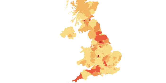 The map below was created using our ‘Local Authority Districts 2024’ template, with data from the Department for Energy Security and Net Zero (DESNZ). The visualisation maps statistics on renewable electricity sites, capacity and generation both as a whole and on a percentage basis, accounting for the number of households in each local authority. As well as providing tabled data on renewable electricity by type.
