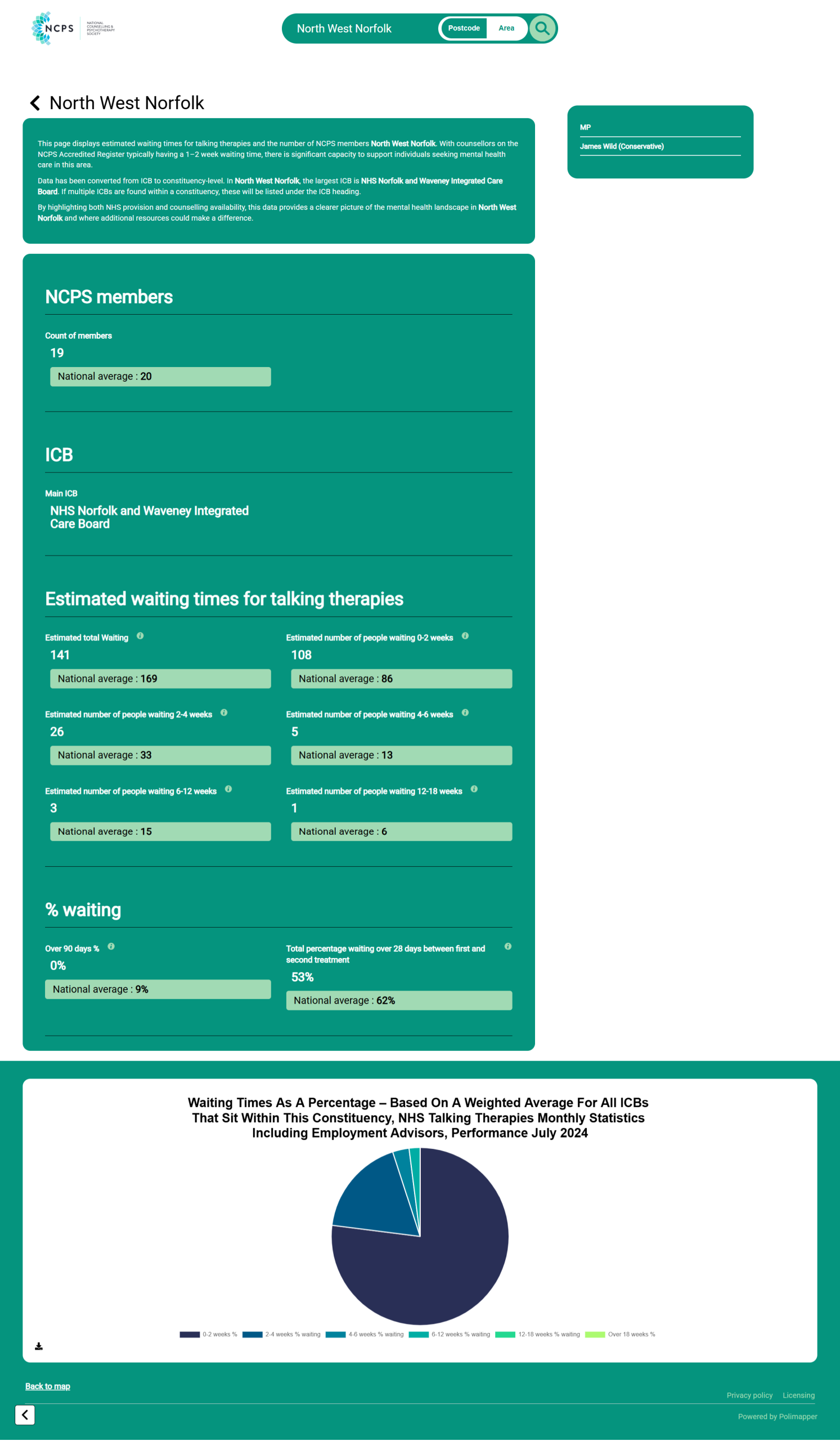 Talking and psychological therapy waiting times data by Integrated Care Board was collected from ‘NHS Waiting Times’ statistical datasets. This data was then converted to fit constituency boundaries by the Polimapper team.